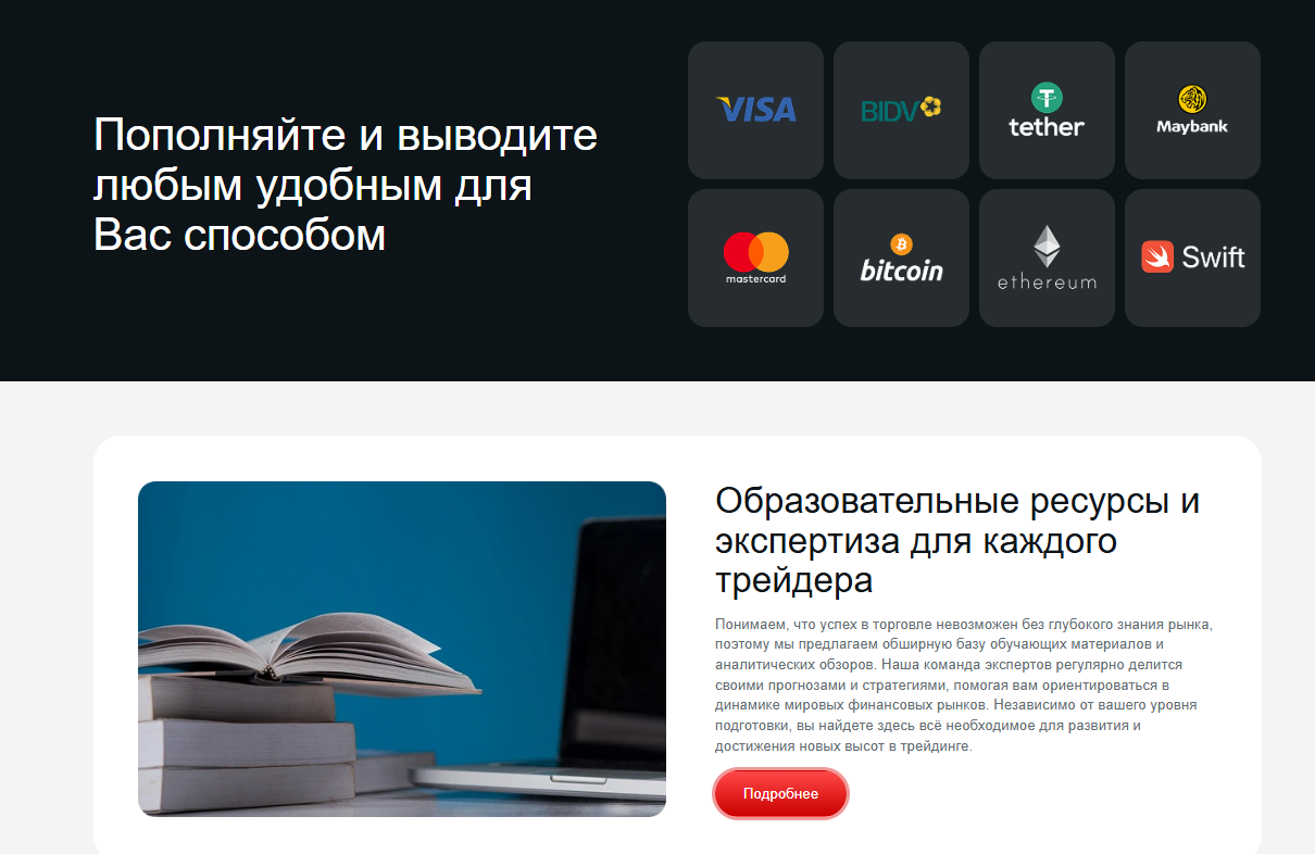• минимальный депозит составляет 250 долларов, чтобы перейти на второй уровень, потребуется внести сразу 5000 баксов;
