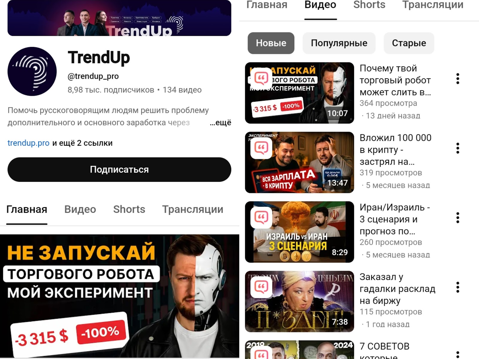 Ютуб канал Trendup pro функционирует с 2020 года, и к нему присоединилось 8k юзеров.