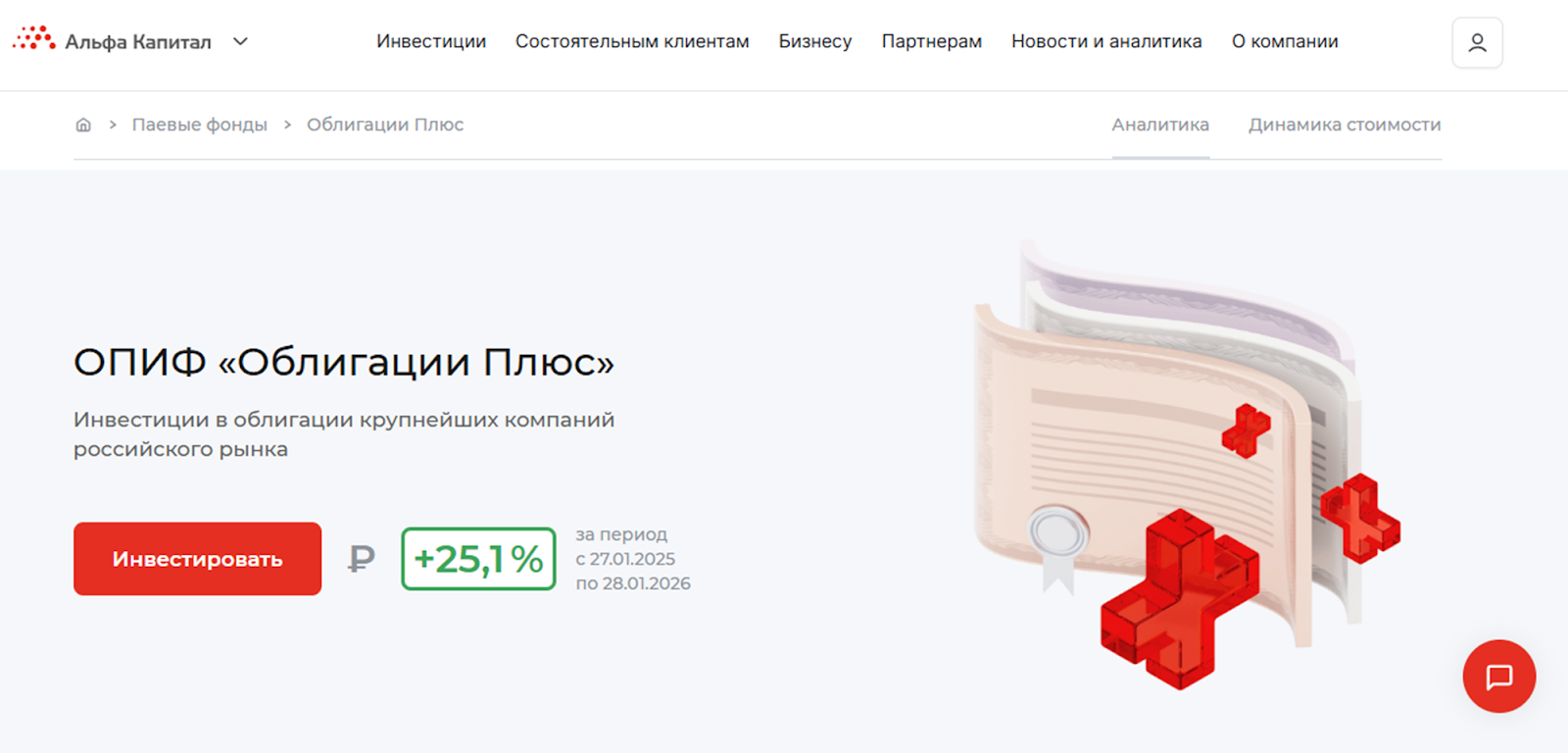 Заявлены следующие преимущества при вложении капитала в ПИФ «Альфа Облигации плюс», это:- активное управление;