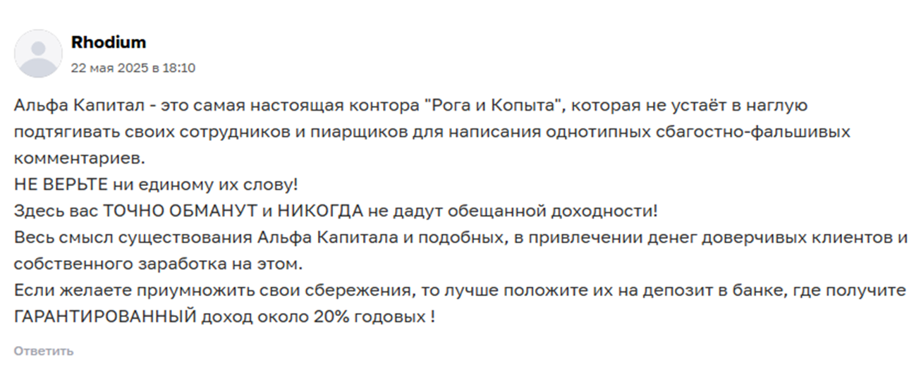 Но нашлись на проект и на брокера «Альфа капитал» негативные отзывы.