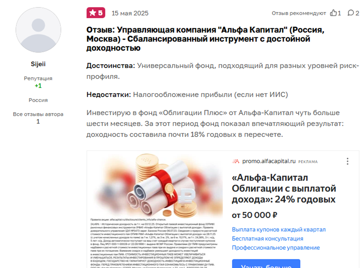 «Альфа капитал» «Облигации плюс» отзывы клиентов