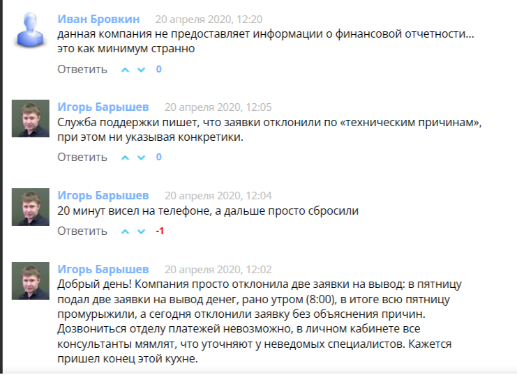Сколько бы на самом деле не существовал брокер, отзывов он успел получить немало. При этом практически все отклики – отрицательные. Создалось ощущение, что клиенты жалуются буквально на все. У кого-то без объяснений блокируют аккаунты и замораживают средства на счету. Кто-то часами не мог дождаться ответа от службы поддержки. Если дозвониться удавалось, то сотрудники откровенно грубили и отказывались выполнять свои прямые обязанности.