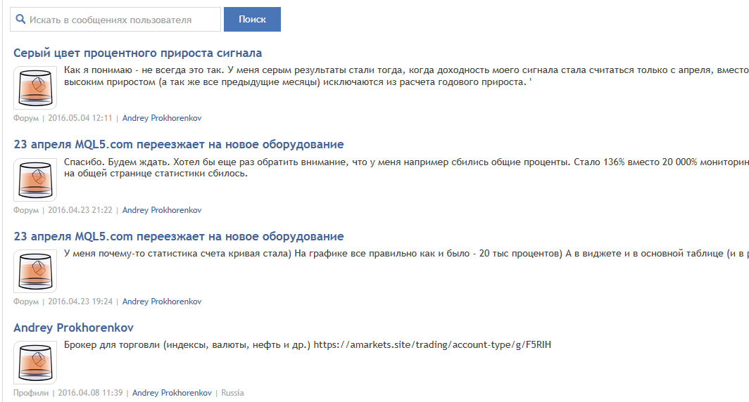 Комментариями трейдер похвастаться также не может, пиком его активности считается период с 2016 по 2020 год, именно тогда Андрей Прохоренков участвовал в обсуждениях касательно цветового обозначения сигналов и переезд MQL5 на новое оборудование.
