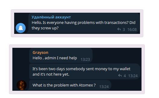 Отзывы об Atomex в целом негативные, особенно после закрытия 31 января 2025 года. Люди пишут, что предупреждение оказалось запоздалым, инструкций по безопасному выводу было мало, а ответы приходили медленно. Часто жалуются на свопы. Сделки зависали на часы, иногда срывались, а возврат средств тянулся долго. Итоговая цена обмена нередко отличалась от ожиданий из‑за доплат сторонним участникам и котировок маркет‑мейкеров. Поддержка работала только по почте и отвечала не всегда оперативно. Это усиливало нервозность в моменты сбоев и при остановке сервиса.