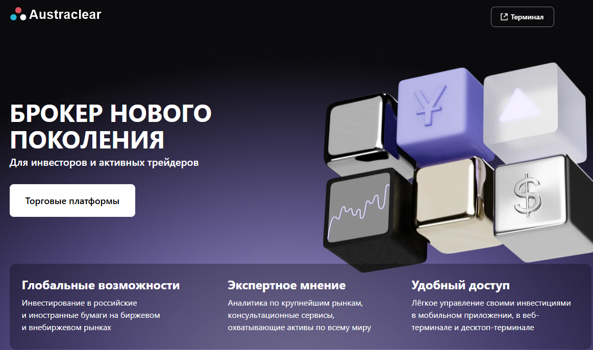 «Аустраклеар» называет себя брокером нового поколения. Через платформу можно торговать российскими и зарубежными акциями. В списке инструментов – акции, облигации и валютные пары.