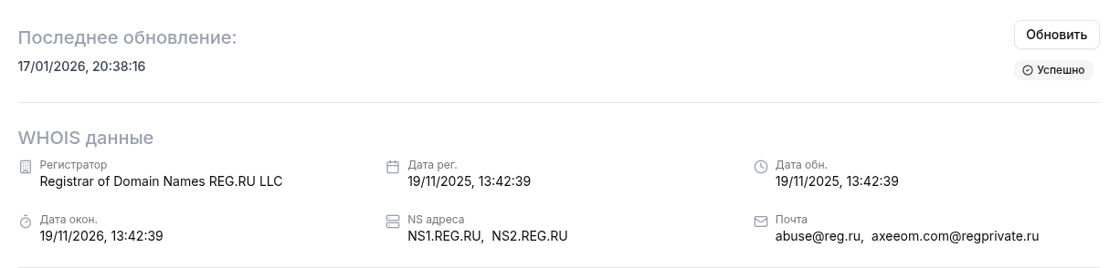 Первое, на что стоит обратить внимание – вопиющее несоответствие заявленного опыта реальным фактам. На главной странице Axeeom нам рассказывают легенды про полтора десятилетия успешной работы и тысячи довольных выпускников. Цифры звучат солидно, вот только простейшая проверка домена разбивает эту мифологию в пух и прах. Сайт был зарегистрирован совсем недавно – в конце ноября 2025 года. Получается, что вся их «богатая история» и «многолетний опыт» – просто нелепая выдумка маркетологов.