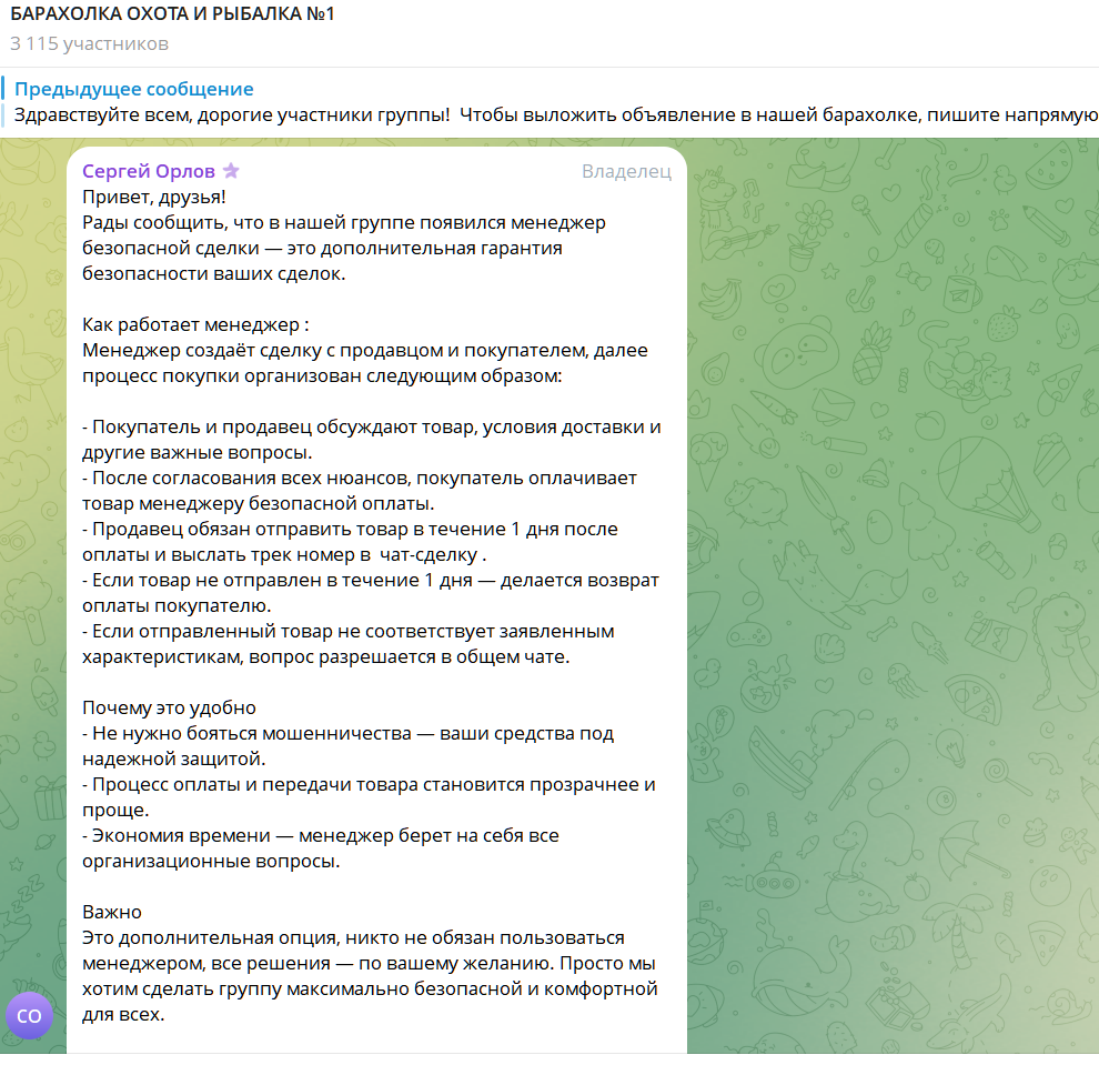 Как работает развод пользователей в ТГ проекте «Барахолка охота и рыбалка»