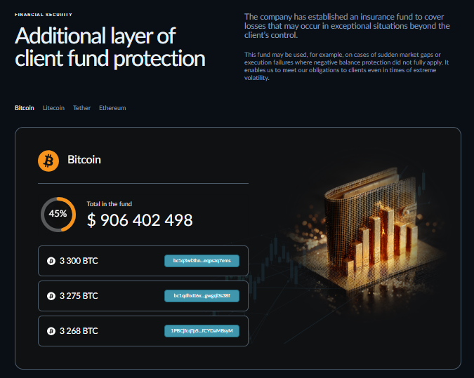 Чтобы добавить солидности, брокер Bexnissen сообщает, что работает с ведущими мировыми поставщиками ликвидности. Это позволяет обеспечить стабильное выполнение ордеров. На первый взгляд организации вполне солидные и всемирное известные. Однако, в этом и кроется подвох, ведь ни с одной из них брокер не сотрудничает. Данный стандартный перечень, который используют все лжеброкеры, чтобы подтвердить результативность своей работы.Еще одно доказательство финансовой стабильности организации кроется в создании специального страхового фонда. У Bexnissen он тоже есть и исключительно в криптовалюте, что очень современно и впечатлит клиентов. Здесь имеются Bitcoin, Litecoin, Tether и Ethereum во внушительном количестве. Фонд якобы будет покрывать расходы при возникновении непредвиденных ситуаций.