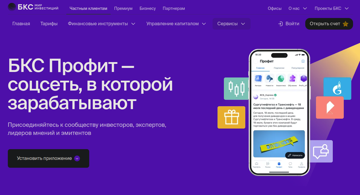 Кроме того, «Бкс» создала собственную социальную сеть «Профит». А страницу Profit official можно найти на сайте Bcs express ru.