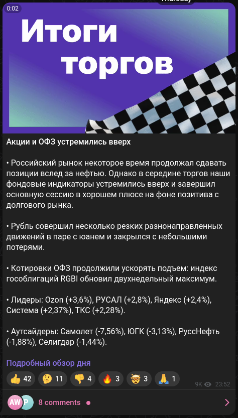 На канале «Бкс экспресс» в Тг не публикуют откровенной рекламы и не уговаривают покупать платных курсов или стратегий. Все посты исключительно по делу. Их главное назначение информирование и привлечение внимания аудитории к более глубокому изучению вопросов на других специализированных ресурсах «Бкс».Обзор медиа Bcs world of investments