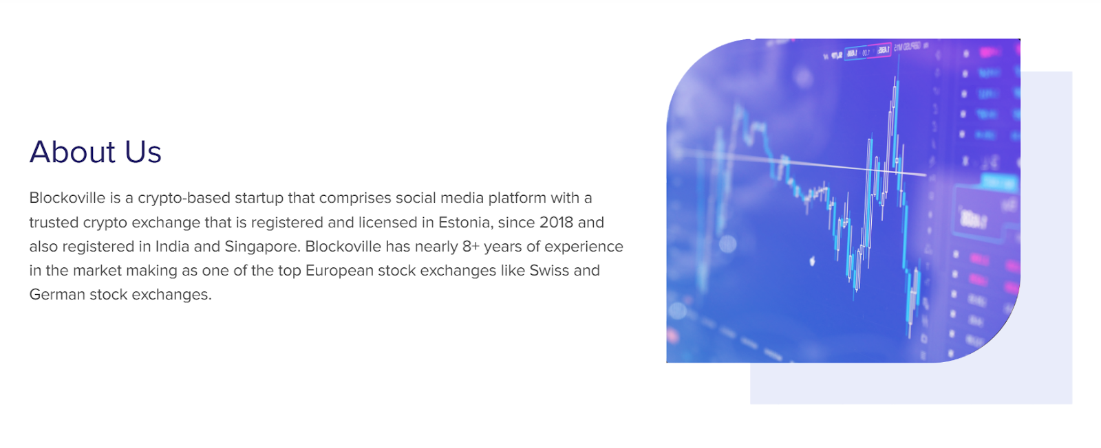 BlockovillePvtLtd юридически зарегистрирована в Эстонии. Blockoville упоминается в нескольких каталогах и профилях стартапов. Она выступает частью экосистемы подобных гибридных платформ. Многие из них одобрены индийским регулятором. Тут предоставляются услуги институционального уровня. Проект преимущественно ориентированный на OTC-услуги, а не на предоставление доступа к платформе обыкновенным трейдерам, как это делают другие биржи.Биржа Blockovill действительно выглядит перспективно в описании. Но проверка активности показывает, что создатели проекта перестали поддерживать его в социальных сетях. Известность общей экосистема, как и данной площадки в частности, является низкой. Иногда встречаются упоминания, но отклика от пользователей почти нет. С учетом длительности времени работы биржи это выглядит странно.