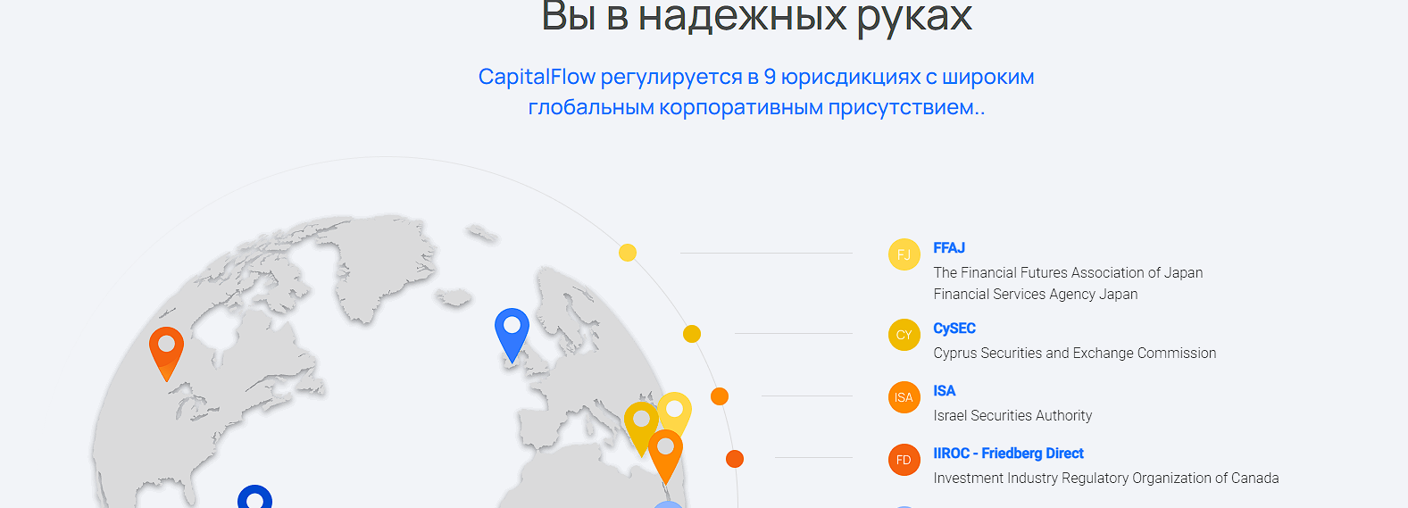 Давайте разберёмся, почему брокер получил такую славу. Во-первых, у него нет надёжного регулирования: одна лицензия от оффшорного регулятора низкого уровня. Далее, в обзорах акцентируют внимание на несоответствие информации на сайте – в частности, утверждения о «девяти лицензиях на шести континентах». И наконец, сыграли роль клиентские отзывы, в которых Capitalflow называют обманщиком.