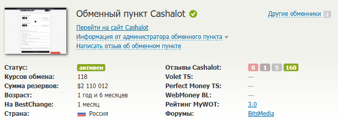 Мы допускаем обменник Cashalot к использованию, так как он считается относительно безопасным.