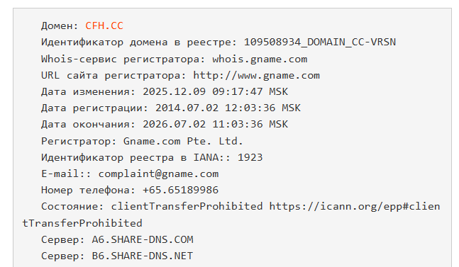 - Несостыковки в данных о возрасте домена Cfh cc и его фактическом содержании указывают на возможный редизайн старого адреса под новую схему, что является признаком нечистоплотной практики.