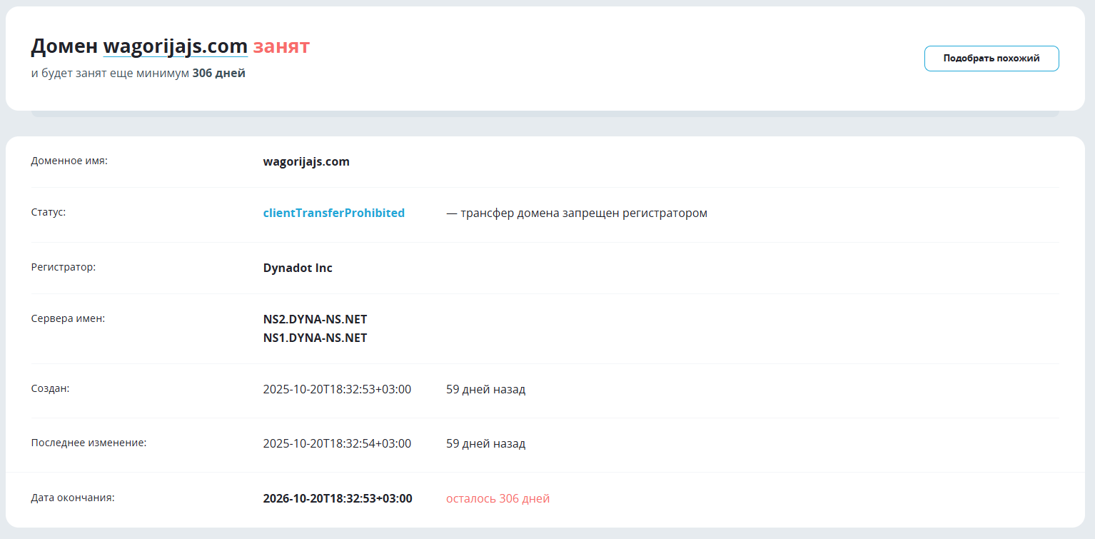 Этот домен зарегистрировали в октябре 2025 года, на момент подготовки материала он существует всего 59 дней – это небольшой срок, что позволяет судить о работе проекта в течение 1 месяца. Вероятно, портал изначально был создан для скама, так как о нем складывается именно такое впечатление.
