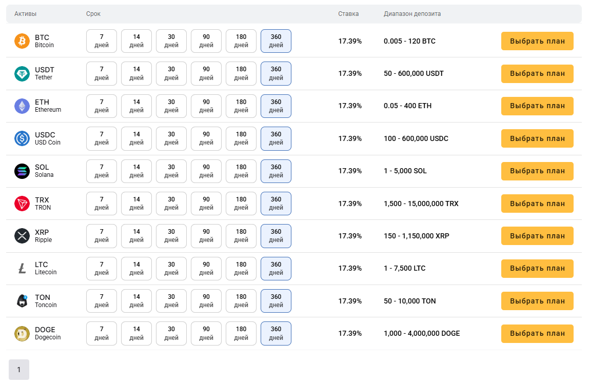 На то, что биржа Coinosi предлагает скам, указывает большое количество факторов – например, условия по стейкингу криптовалют. Заявлено, что трейдер сможет получать до 17.39% при размещении депозита в USDT или других сетях – условия сильно отличаются от тех, что представлены на рынке.