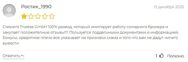 - в сети только негативные отзывы о Crescent Trustee GmbH;
