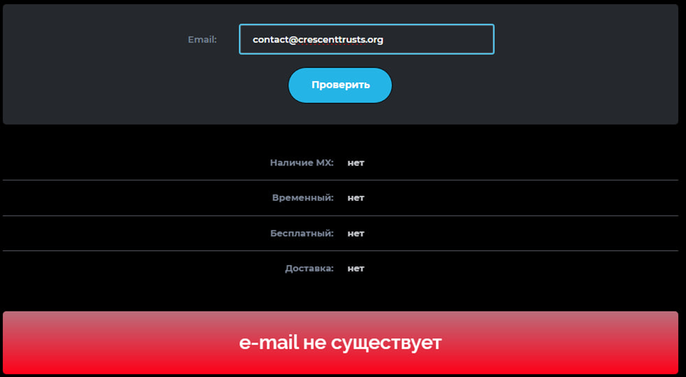 В качестве службы поддержки Crescenttrusts Org указана электронная почта: contact@crescenttrusts org. Проверка показала, что ее не существует. Клиенты в любом случае не дождутся ответа на вопрос именно с этого контакта. Также указан номер телефона: +44 20 7123 8456. Все, что удалось узнать, это его регистрация в Лондоне. На многих сайтах для проверки указывается, что контакт мошеннический и брать трубку или звонить туда не стоит.