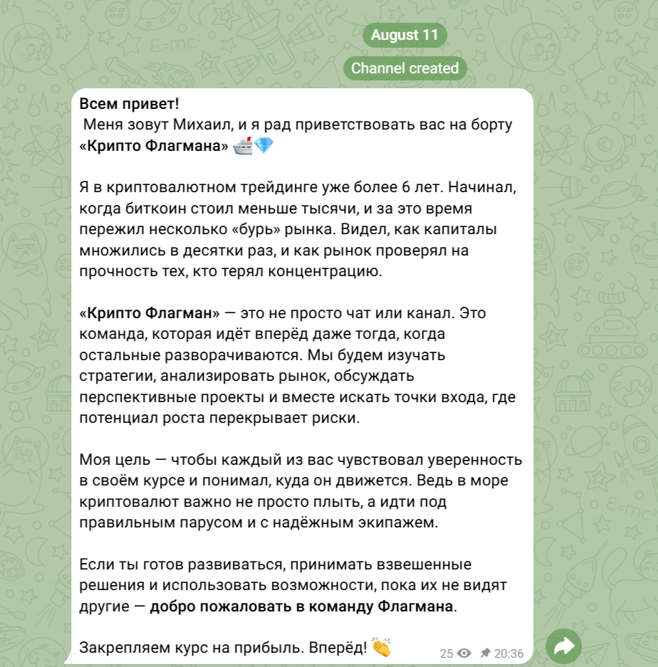 Вместо систематической работы с графиками и сделками в ленте «Крипто Флагман Bitcoin» часто появляются мотивационные тезисы и демонстрация образа успешной жизни. Михаил публикует фотографии с отдыха, дорогих машин и подчеркивает, что подобный уровень якобы стал возможен благодаря трейдингу. При этом ни одно из таких заявлений не подтверждается документально.Канал закрыт для обратной связи. Подписчики не могут задать вопрос публично или увидеть мнения других участников. Любое взаимодействие с автором предлагается вести через личные сообщения, что удобно для продажи услуг, но плохо для проверки качества услуг «Крипто Флагман Bitcoin» со стороны.