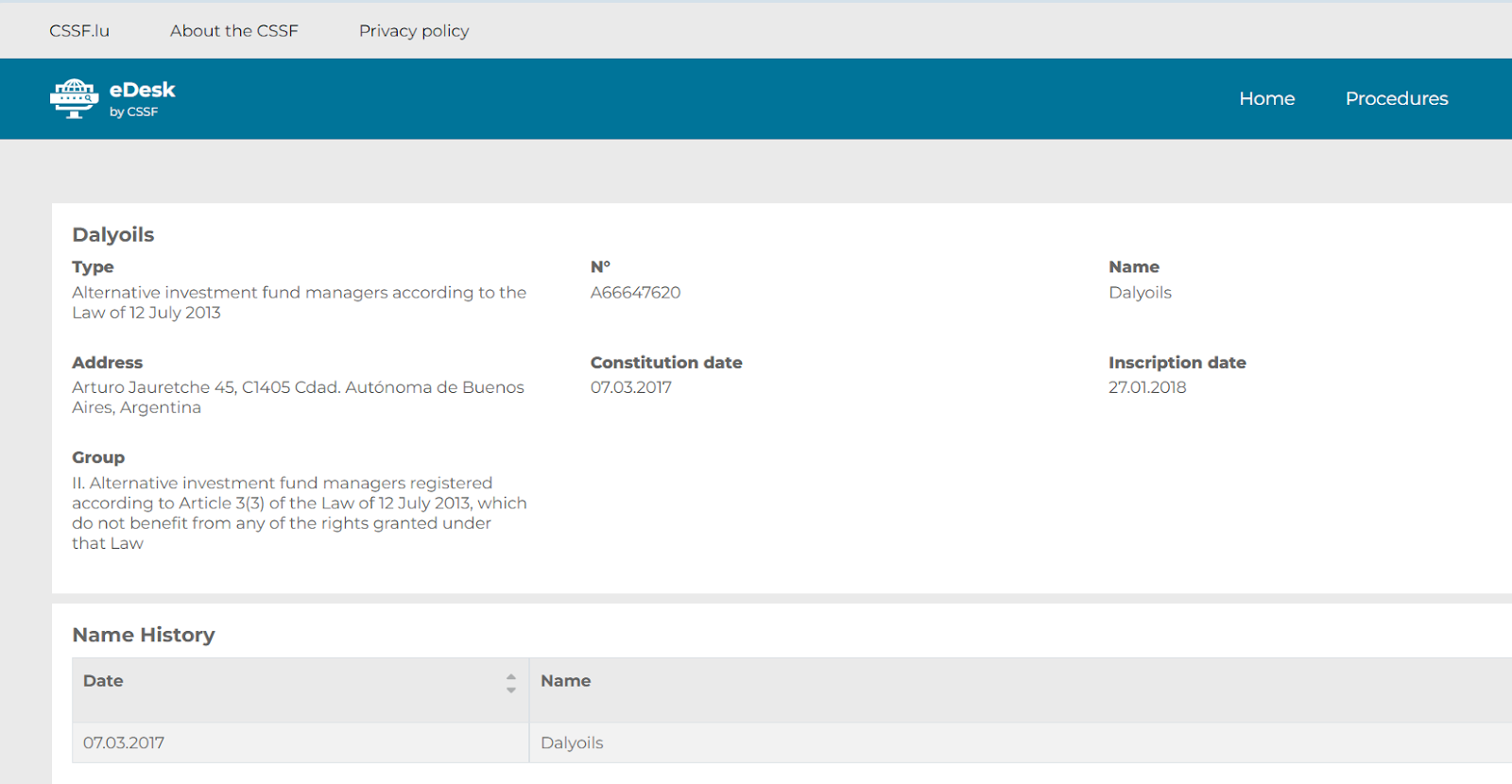 В CSSF Люксембурга сервис числится как альтернативный управляющий фондом без паспортных прав и без разрешений на работу с розничными клиентами.