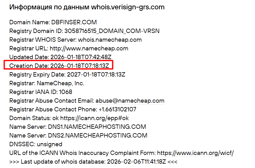 Из данных сервиса Whois можно узнать, что запущен сайт посредника только 18 января 2026 года, следовательно, ни о каком опыте на рынках речи вестись не может на самом деле.