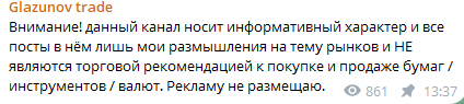 - в телеграмм-канале автора нет платных услуг и рекламы финансовых проектов – у клиентов минимум рисков потерять деньги по вине Dmitrij Glazunov;