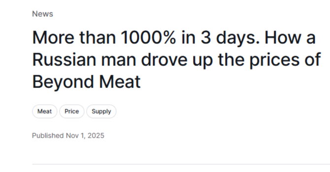 • После покупки Капибары бренд растительного мяса BYND испытал скачок интереса, а его акции были признаны «мем-стоком», однако в нее не стоит вкладываться на долгосрочную перспективу.