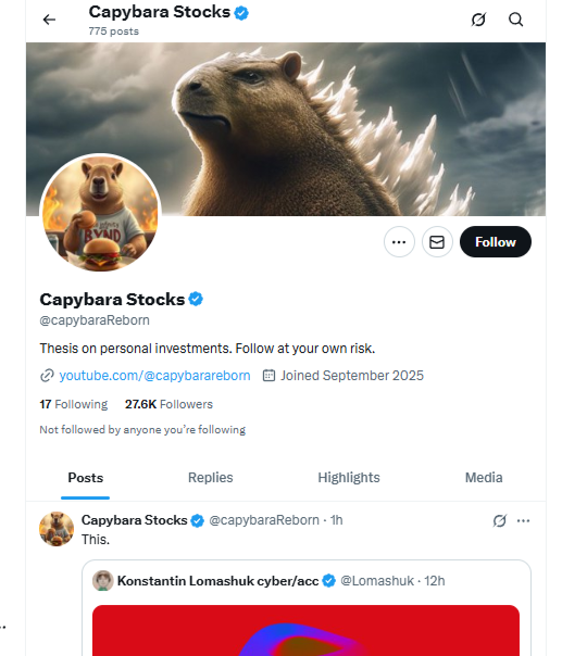 Известность в сообществе трейдеров к предпринимателю пришла после того, как в октябре 2025 он начал ветку обсуждения на «Реддите», где Capybara Stocks заявил о высоком потенциале компании Beyond Meat, а после этого приобрел 4% ее акций за $3,000,000. После этого, 21-22 октября, 2025 BYND резко начинает расти с $0.6 до $7.7, некоторые источники сообщили о 1000% росте за три дня.