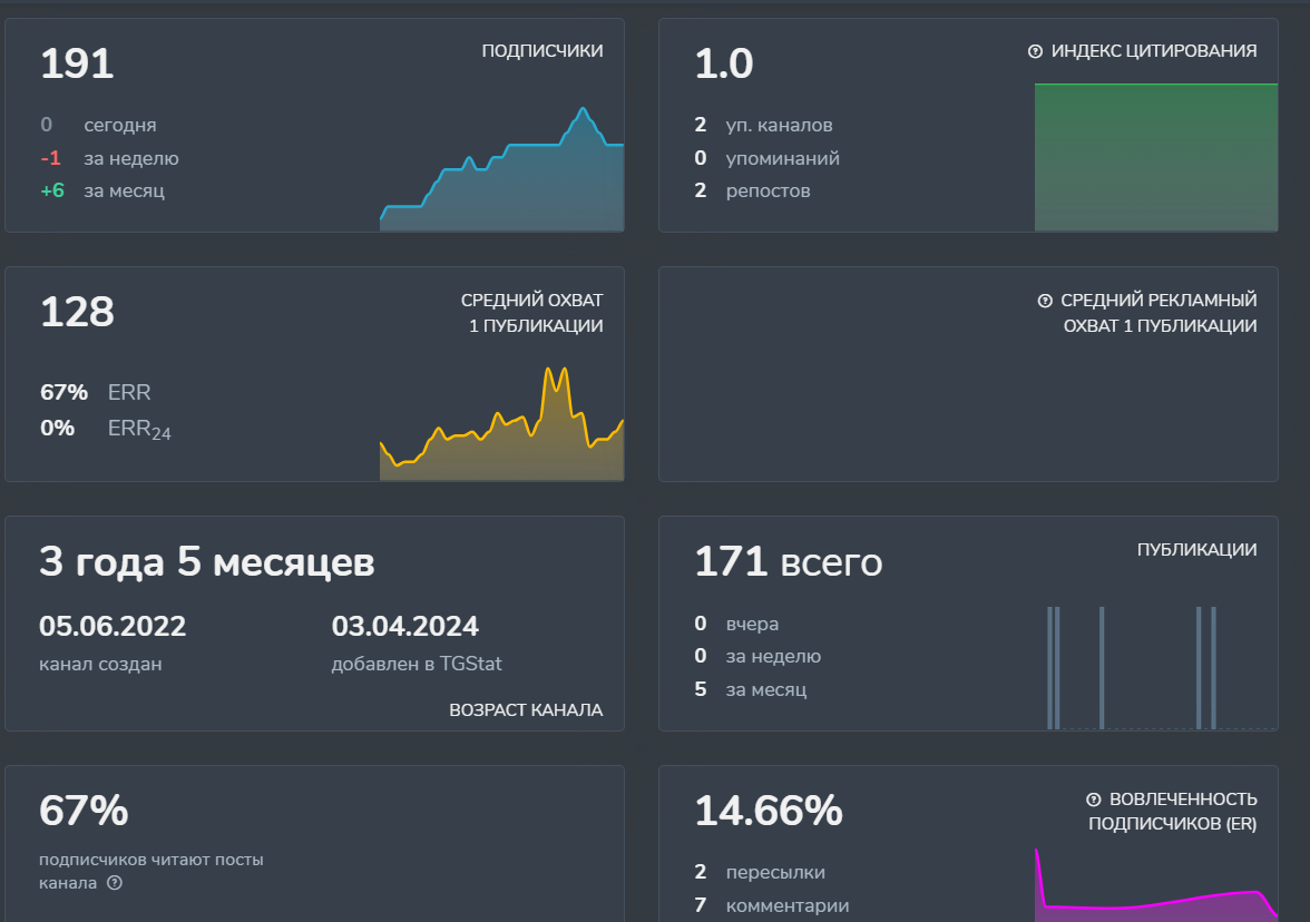 - это медийная персона, но его личный блог в ТГ непопулярен, возможно, есть проблемы с самопродвижением;