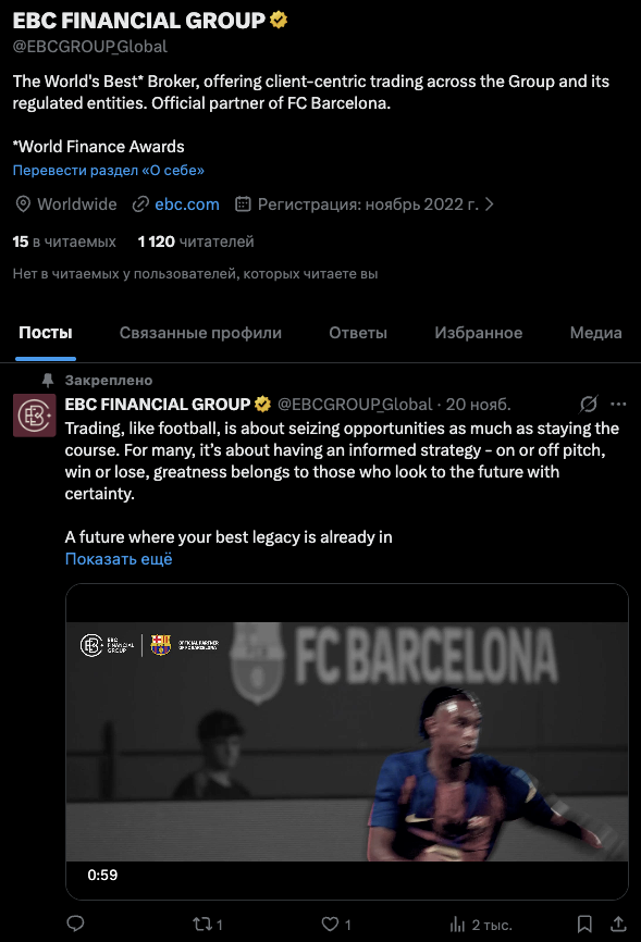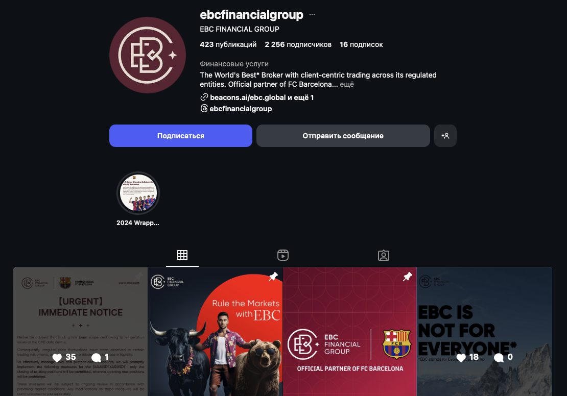 У компании есть и профиль на LinkedIn. Он расположен по адресу EBCGroup и, на 15 декабря 2025-го года, насчитывает аж 27 тысяч отслеживающих.