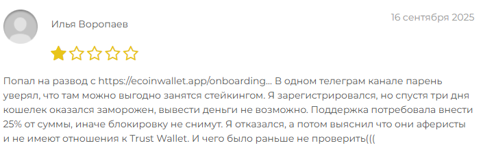 В сети нет положительных откликов о криптокошельке. В отзывах о EcoinWallet app основателей проекта прямо называют мошенниками, клиенты жалуются, что в реальности заработка на стейкинге не получается.