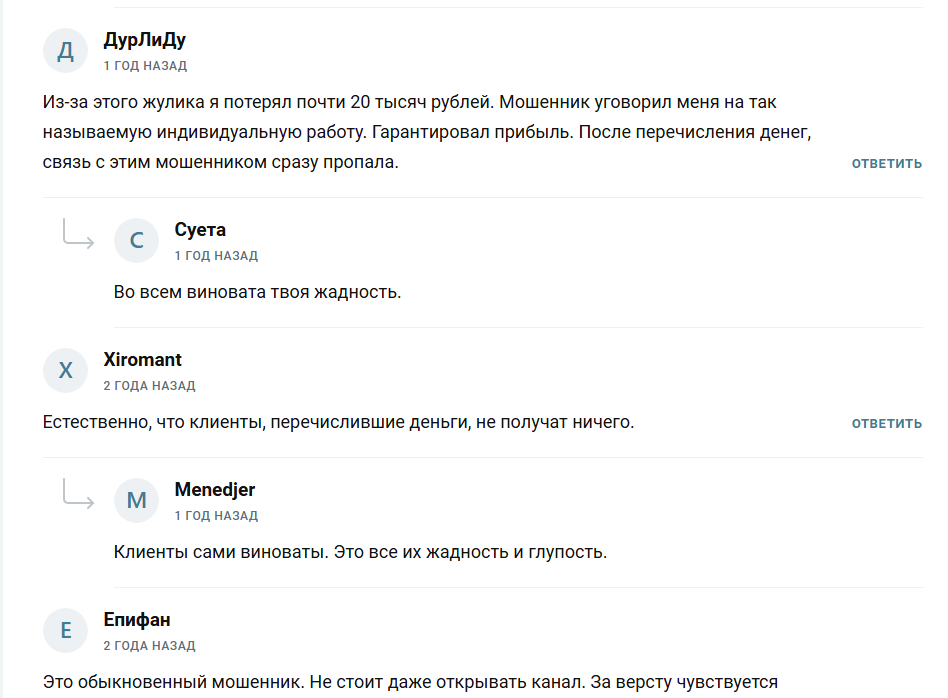 Отзывы об инвестиционном проекта на октябрь 2025 года только негативные. Пользователи делятся своим отрицательным опытом и настоятельно не рекомендуют связываться с Михаилом.
