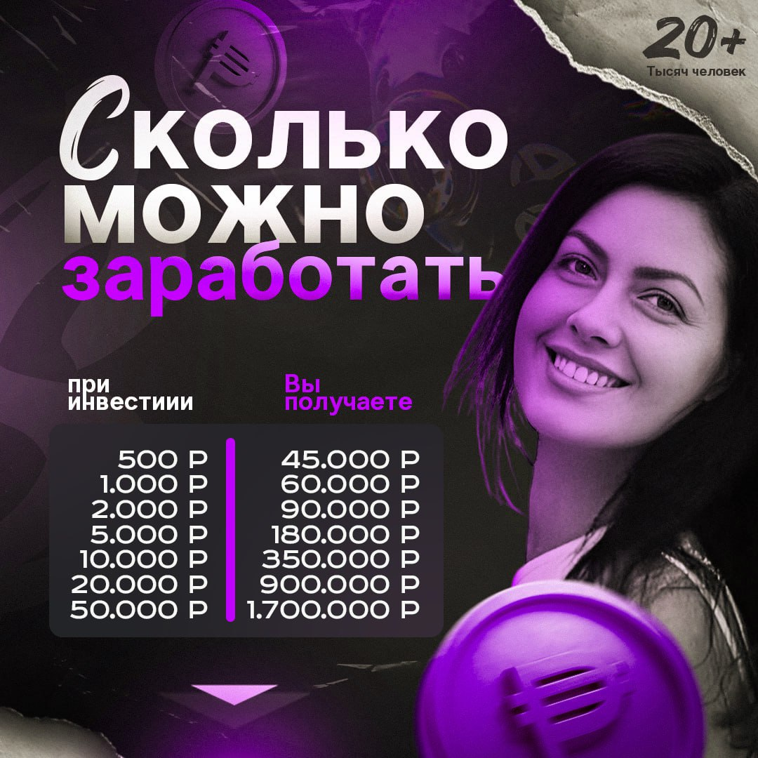 Анонимный специалист предлагает своим клиентам базовые инвестиции от ₽500 до ₽50,000. Взамен за неуказанных период времени он обещает от ₽45,000 до ₽1,700,000 соответственно. Елена не демонстрирует методы и стратегии трейдинга, которые использует, как у нее получается стабильно показывать доходность в 600-900%.