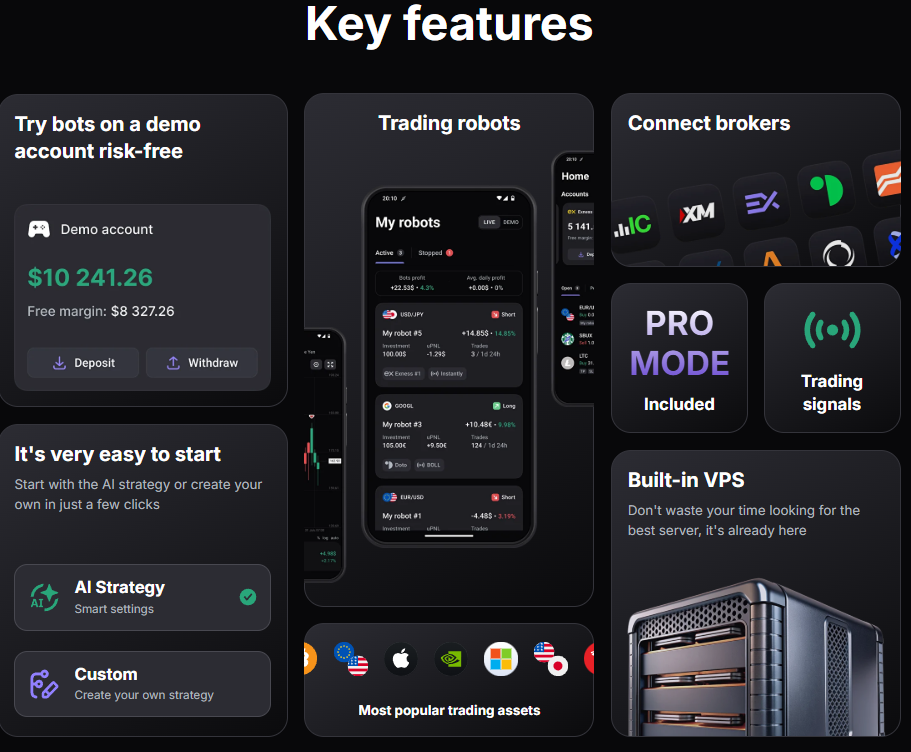 - возможность протестировать робота на демо-счете;