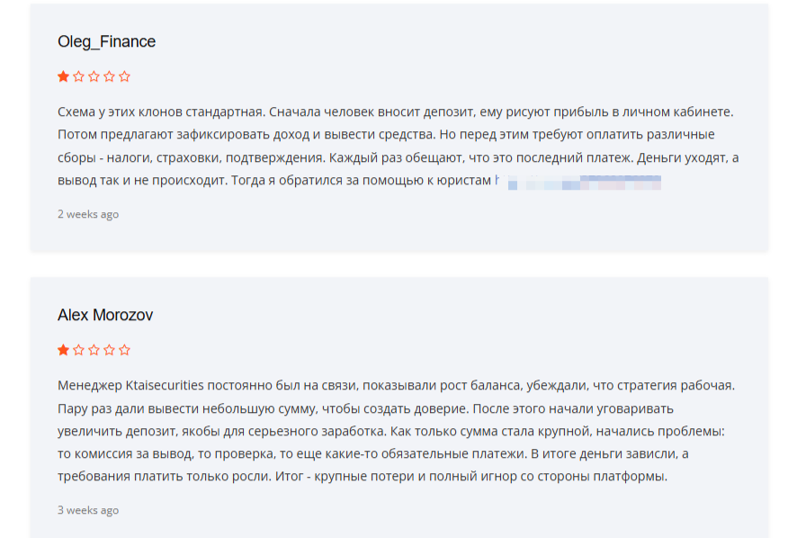 За свою недолгую жизнь брокерская организация не стала обладательницей благоприятных комментариев в свой адрес. Никто в мировой паутине не написал о выгодном сотрудничестве с брокером Ktaisecurities, его функциональном терминале или профессиональном обслуживании техподдержкой.