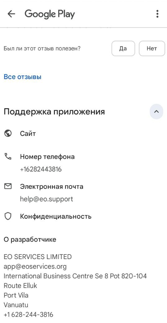 - Принадлежность контактных данных техподдержки другому проекту свидетельствует об отсутствии реального клиентского сервиса на площадке.