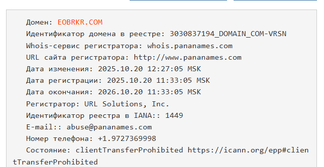 Об их связи никакой информации нет, поэтому нельзя утверждать, что это один и тот же брокер, значит, любые контакты и адреса тоже можно считать недействительными. На сайте написано про работу с 2014 года, но проверка домена показала, что его зарегистрировали только 20.10.2025, а это вызывает еще больше вопросов к владельцам.