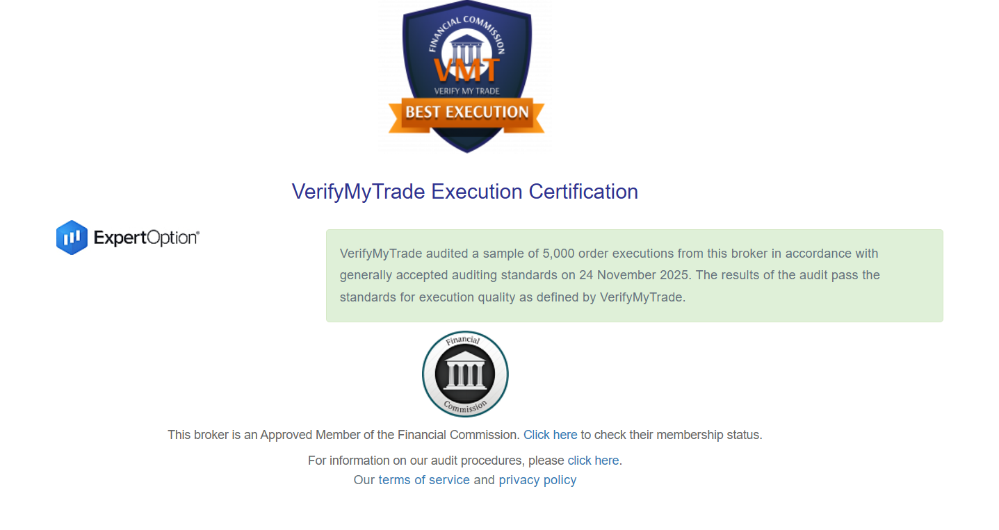 Владельцы в качестве преимуществ выделяют сертификат от компании Verify My Trade, но проверка показала, что он относится не к Eo Broker, а к организации Expert Option.
