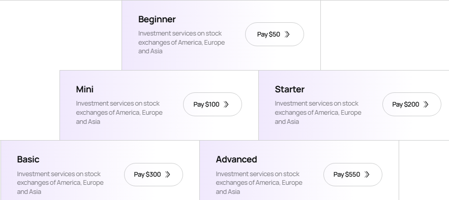На старте новичкам достаточно пополнить баланс счета на 50 долларов, чтобы уже начать зарабатывать деньги. Кроме начального тарифа гражданам предлагают также аккаунты категорий «Мини», «Базовый», «Расширенный» и другие.