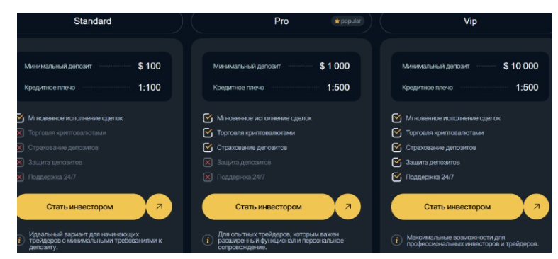 Чтобы получить полный доступ к сервисам Evintology, нужен личный аккаунт. Зарегистрироваться можно через основной сайт или его поддомены. В форме просят указать контакты, полное имя, придумать пароль и согласиться с пользовательскими документами. Если все заполнено корректно, открывается личный кабинет. Дальше обязательна идентификация. Компания говорит, что следует правилам KYC. Для проверки нужно загрузить документ, удостоверяющий личность, и счет за коммунальные услуги как подтверждение адреса. Платформа оставляет за собой право запросить дополнительные файлы, если это потребуется. По заявлениям Evintology, на платформе доступен широкий набор активов. Можно работать с биржевыми индексами, акциями и другими корпоративными бумагами, сырьем и драгоценными металлами, криптовалютами, валютным рынком и энергоресурсами. Набор звучит стандартно для онлайн‑брокера. Компания обещает котировки в реальном времени и экономический календарь. Эти инструменты, как они пишут, помогают принимать взвешенные решения. Также упоминают средства управления рисками, но что именно доступно и как это настроено, не поясняют. Тариф Standard подают как вариант для начинающих. Минимальный депозит от 100 долларов. В пакет входят базовые условия по форексу, кредитное плечо 1:100 и «мгновенное» исполнение заявок. Тариф PRO позиционируют для более опытных. Вход от 1000 долларов. Заявлены операции с криптовалютами и драгоценными металлами, быстрое исполнение, плечо до 1:500 и «страховая защита депозита». Деталей по этой защите в описании нет. Тариф VIP активируется при сумме от 10 000 долларов. Здесь обещают полный доступ ко всем возможностям платформы. Конкретных отличий и параметров сверх общего описания не приводят.