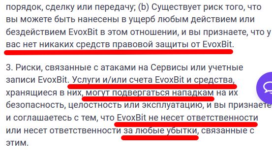 Ко всему прочему в правилах оказания услуг EvoxBit сказано, что: