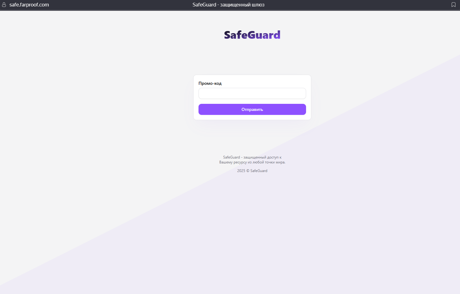 Основной сайт – safe farproof com, попасть на него можно только по промо коду, который, вероятно, предоставляют заинтересованные в привлечении инвесторов менеджеры.