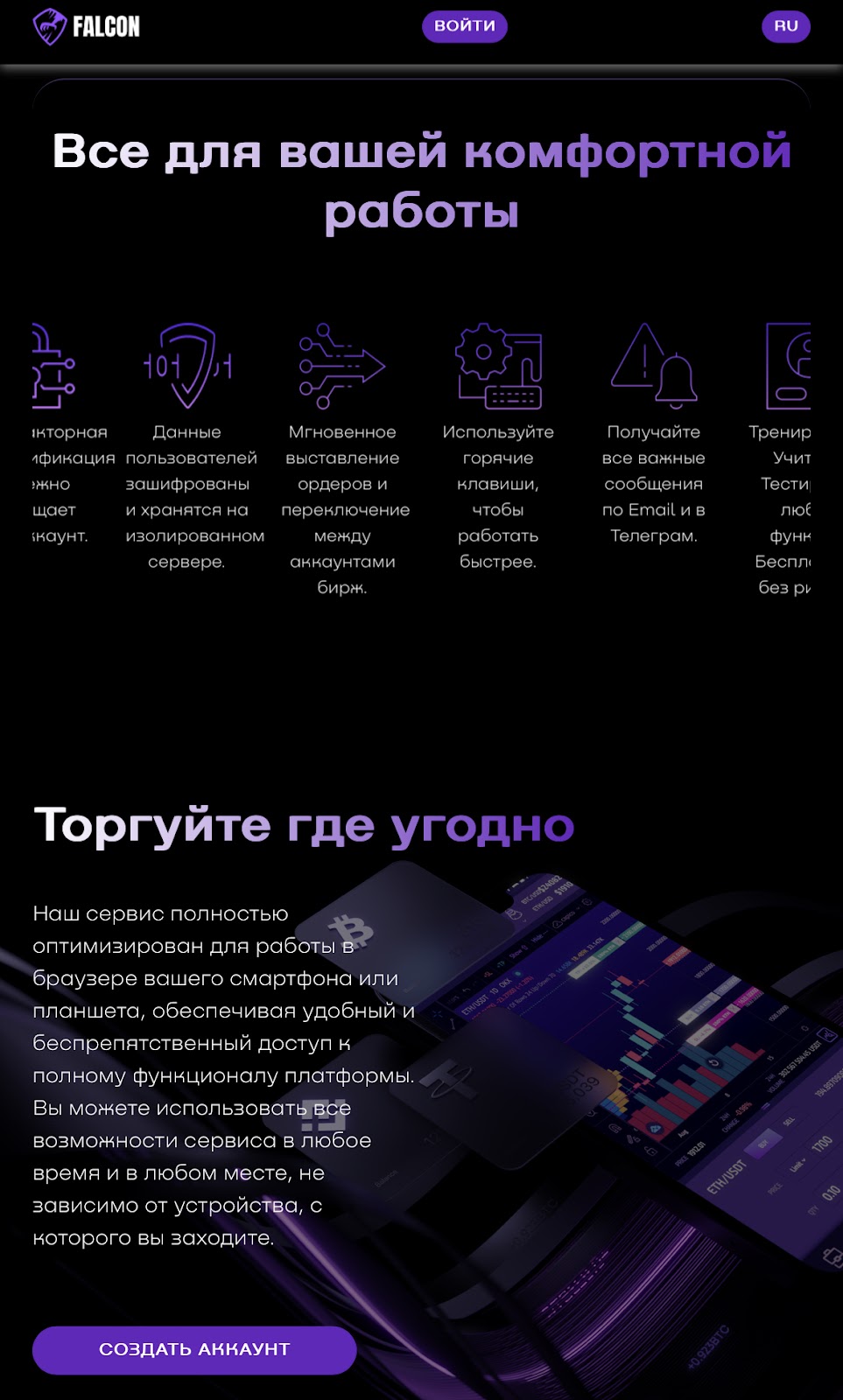 Компания предлагает зарегистрироваться начинающим инвесторам и мощные инструменты, аналитические данные для успешной торговли. Сервис помогает следить за статистикой рынка с помощью технологий ИИ. Контроль над инвестициями доступен с любой точки мира. Проект предоставляет возможность работы на бирже с активами, акциями и криптой. Однако, с какими платформами сотрудничает организация — непонятно.