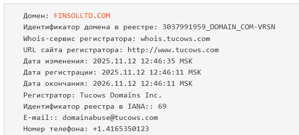 Мы проверили проект и выяснили, что деятельность проекта никем не регулируется, регистрация домена прошла в ноябре 2025 года, в пользовательском соглашении написано про несоответствие реальным ценам, а в отзывах о FinsolLtd com говорят про обман.