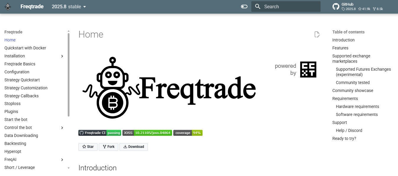 Технически это совокупность ядра бота, сопутствующих репозиториев (стратегии, technical indicators, UI и пр.) и инфраструктуры для CI/release; релизы выходят регулярно, ежемесячные теги видны в GitHub-реестре релизов. Коммьюнити живое: репозиторий активно поддерживается, есть wiki и dev-каналы.