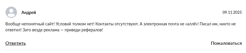 - полное отсутствие данных о комиссиях, лимитах и условиях вывода;