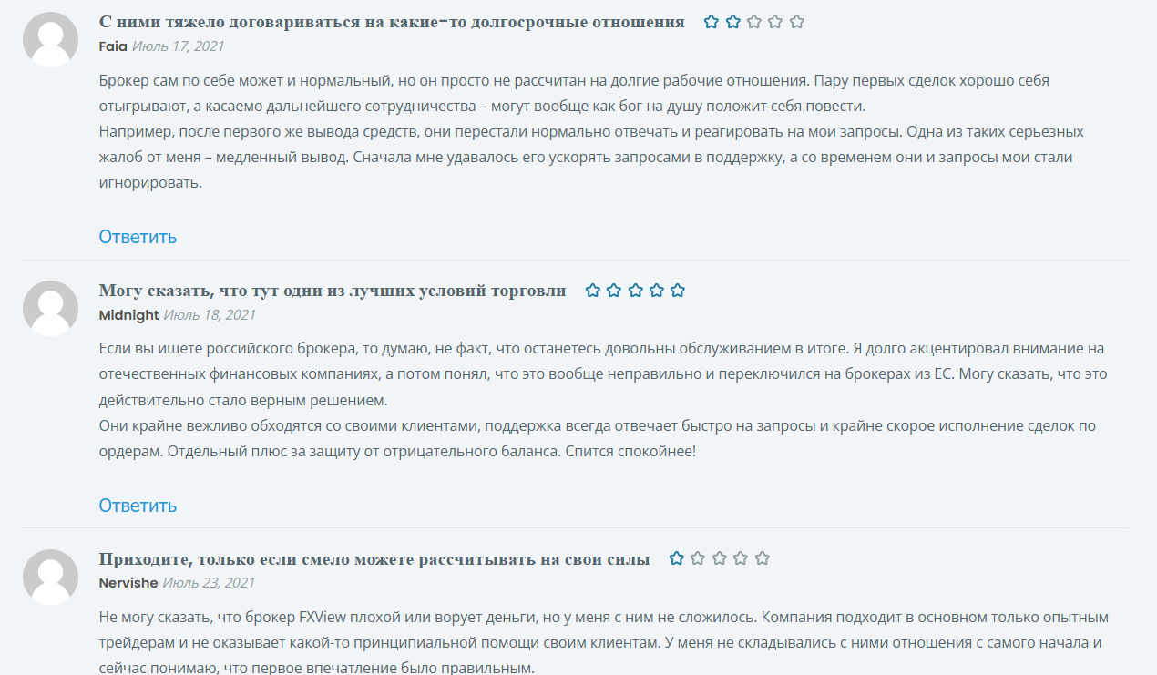 Отзывы трейдеров о работе с Fxview