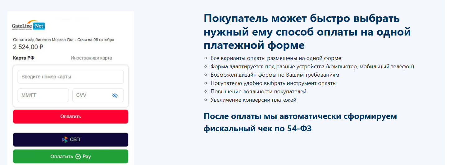 На официальном сайте проекта «ГейтЛайн» указаны преимущества проекта, например, адаптивность по разные устройства и персональный дизайн под требования заказчика. Также пользователь может найти примерную иллюстрации платежной формы для демонстрации как это примерно выглядит. Заявлено, что сайт GateLine ru автоматически формирует фискальный чек после оплаты, основываясь на 54-ФЗ.