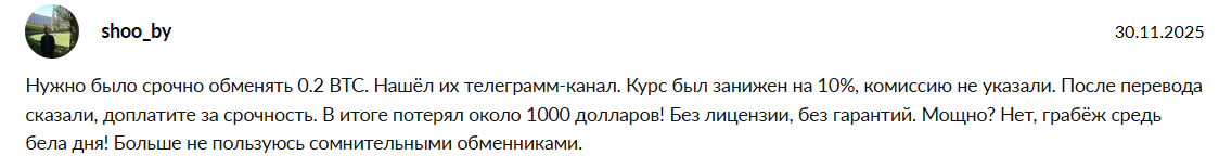 Поскольку обменник никем не регулируется, существует риск, что потеряв свои деньги на сайте платформы, обратиться трейдерам будет некуда.