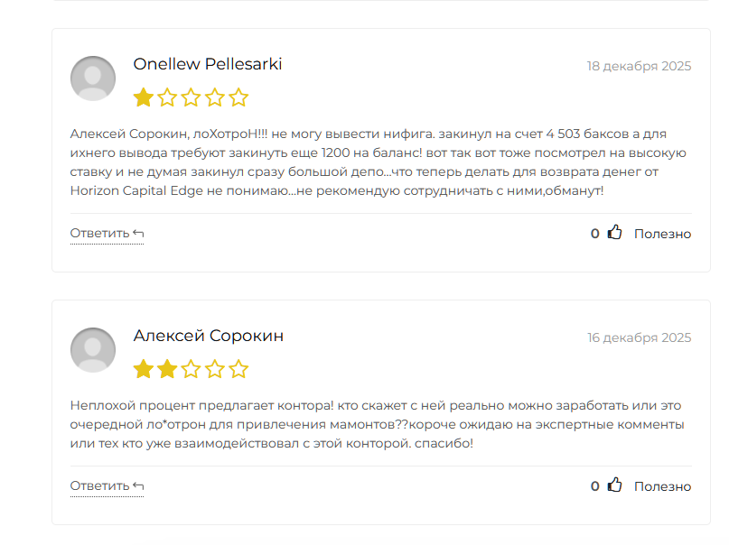 Какие про инвестиции на сайте horizoncapitaledge com отзывы